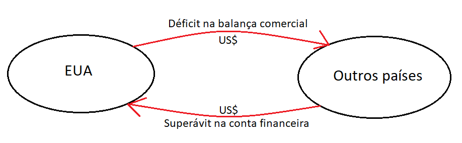 Assim como em biologia existe o ciclo da água, do carbono ou do nitrogênio, perceba que existe na economia internacional uma espécie de “ciclo do dólar”: dólares saem dos EUA mediante importações, porém voltam para o país via investimentos.