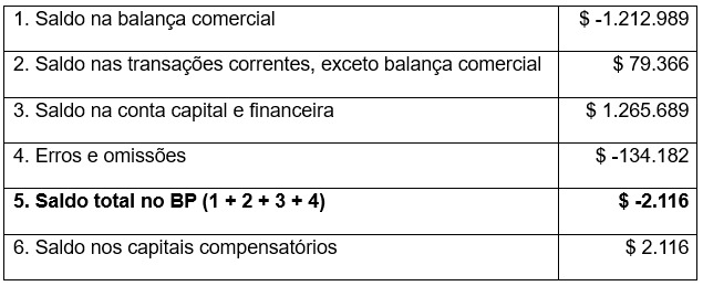 O déficit comercial não é compensado por superávit em outras contas do BP “abaixo da linha” além das reservas internacionais, como empréstimos de dólares do FMI, por exemplo — ou seja, o país passa por uma crise de confiança, em que credores internacionais não estão dispostos a emprestar a ele;